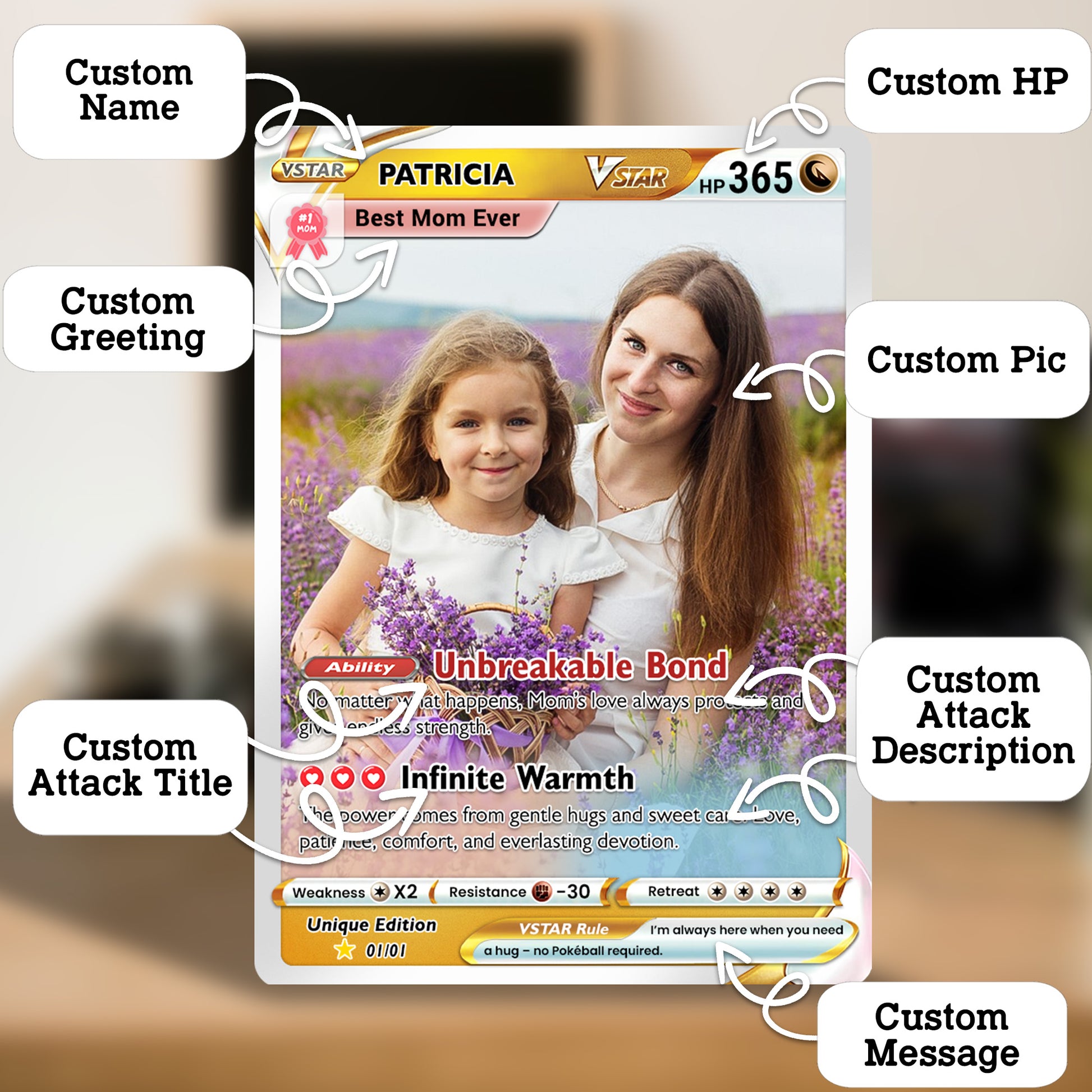 Anime-Inspired Personalized Pokemon Card for Mom - Mother's Day Custom Pokemon Card - Pokemon Mommy Card - Customizable Trading Cards - CPC-40
