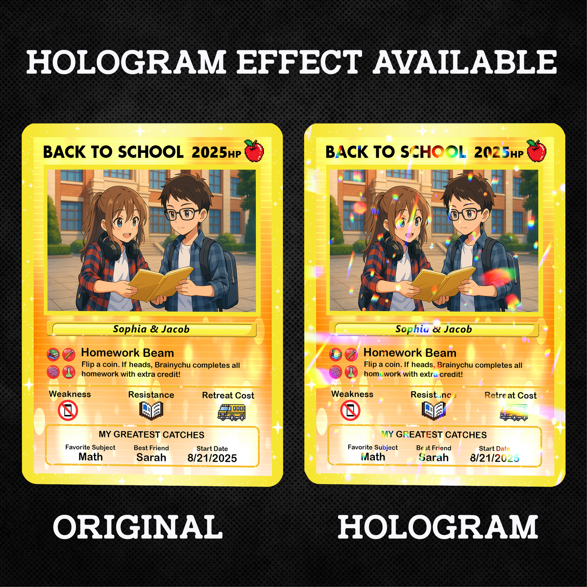 šļø Fully Personalized Anime-Style Card ā Customize with name, grade, special title, themed āmovesā like āHomework Beamā or āBackpack Slamā to create your own Customizable Pokeman