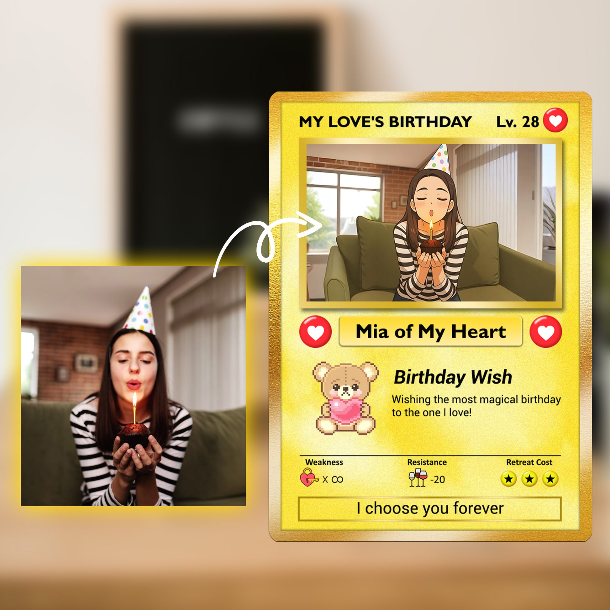 Anime Transformation Personalized Pokemon Card, Birthday Custom Pokemon Card for Couples, Customizable Pokemon Cards for Birthday - CPC-44