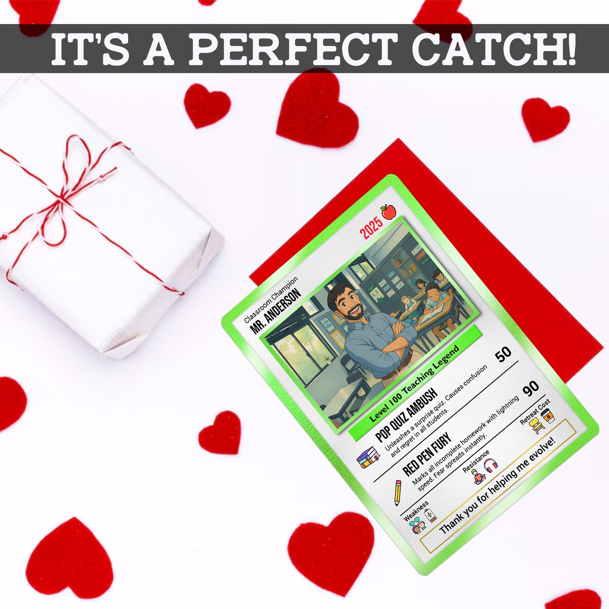 Whether gifted by one student or a whole class, this is more than a teacher thank you card – it’s a legendary tribute.