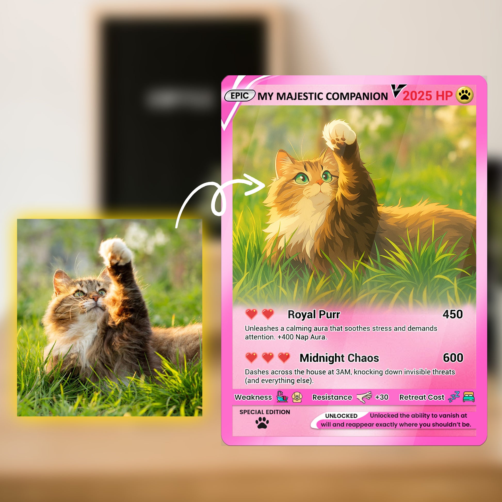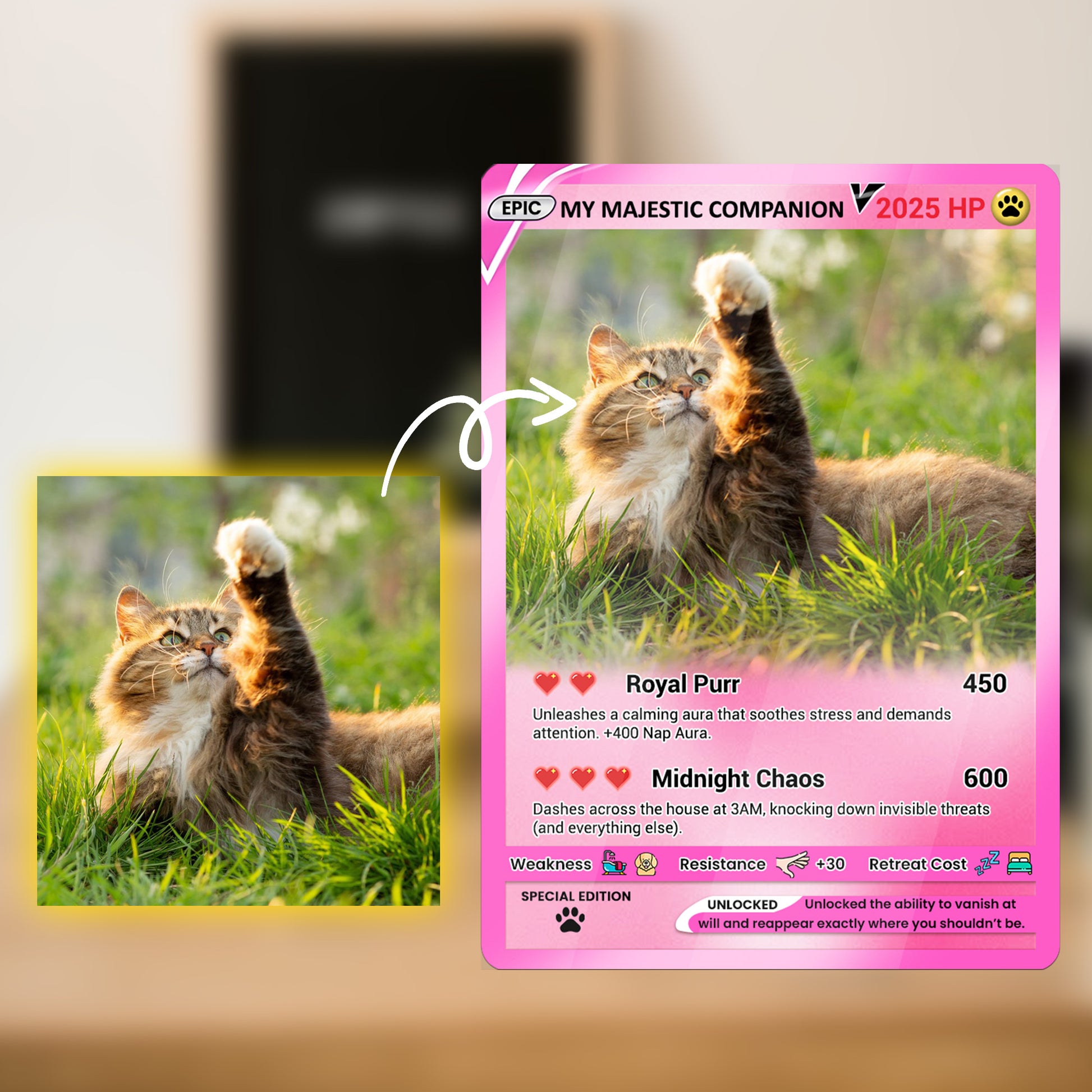 Custom Pokémon Card for Pet Lovers, Personalized Pokémon Card with Pet Photo for Cat Dad Cat Mom - CPC-35