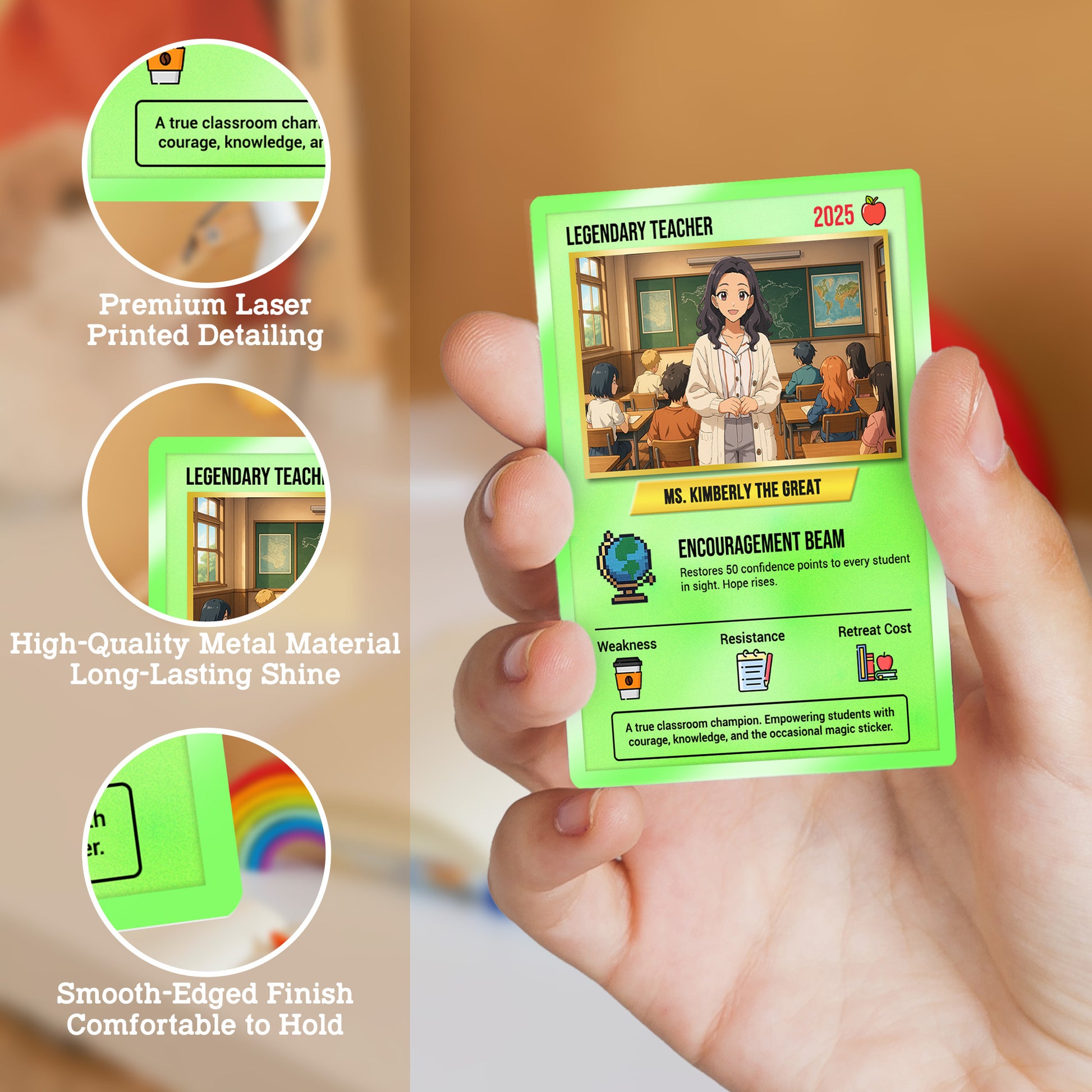 Personalized Poke Card for Teacher Appreciation – Express your gratitude with a unique metal card designed in Pokémon-inspired style. Perfect for end-of-year or Teacher’s Day gifts.