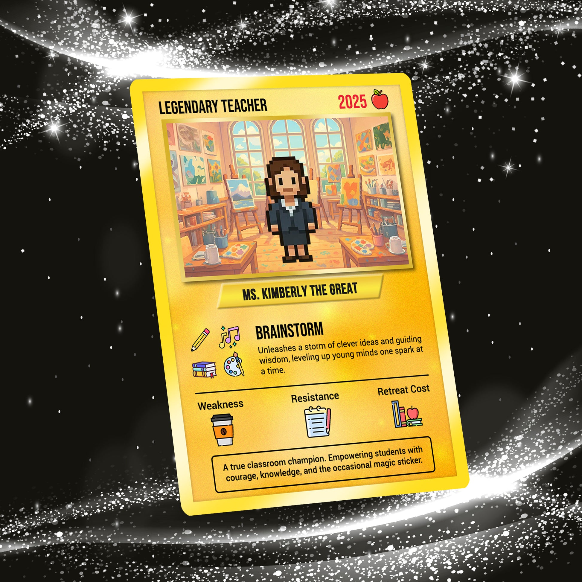 Honor the teacher who made a difference with a custom-made metal Pokemon-style card that brings fun, creativity, and heartfelt appreciation together in one unforgettable gift. Whether it's the end of the school year, Teacher's Day, or just a spontaneous thank-you, this Personalized Pokemon Card is a standout way to say “You’re Legendary.”