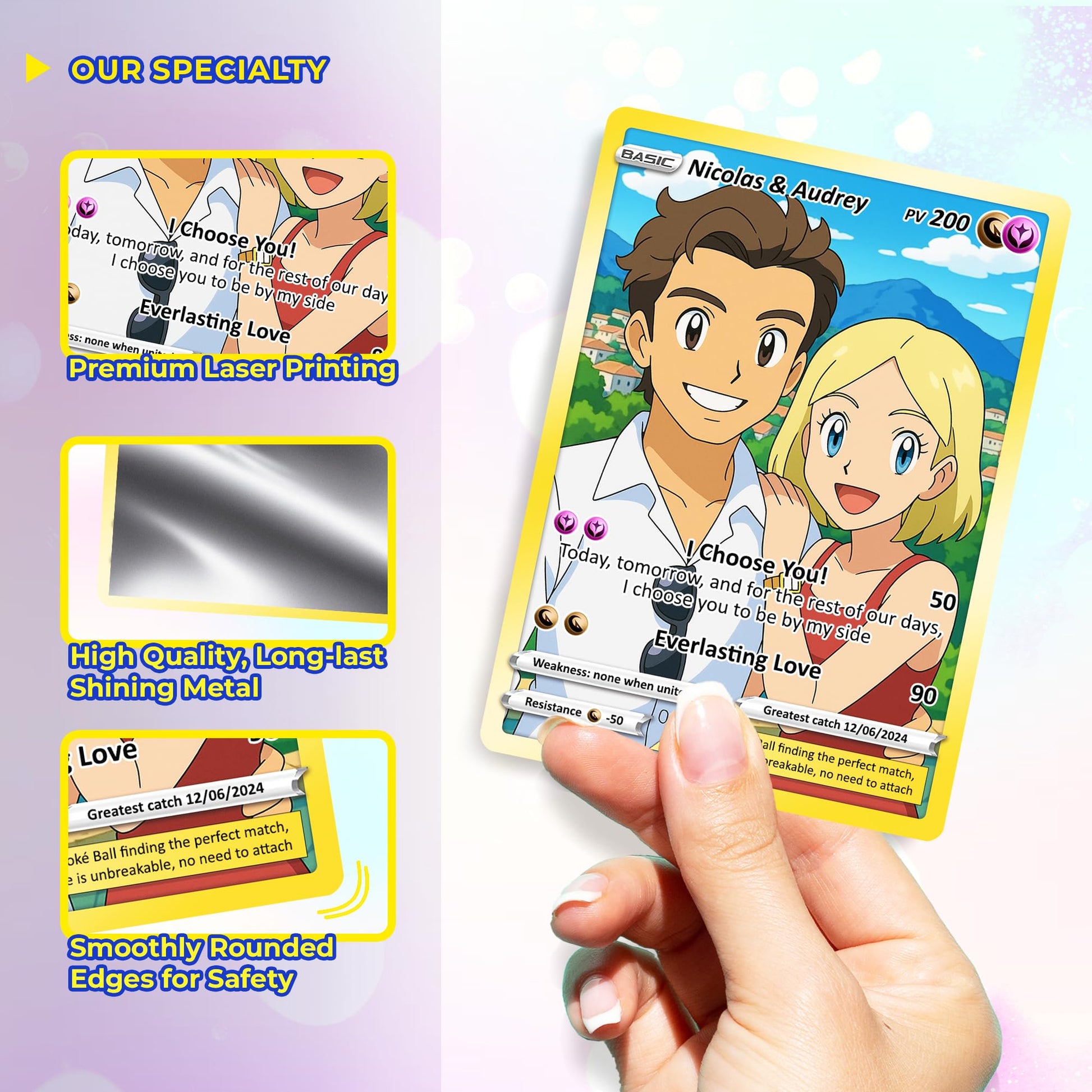 Customizable Pokemon Card - Personalized Anime-Inspired Pokemon Card for Couples - Holographic Effect Available - CPC-28