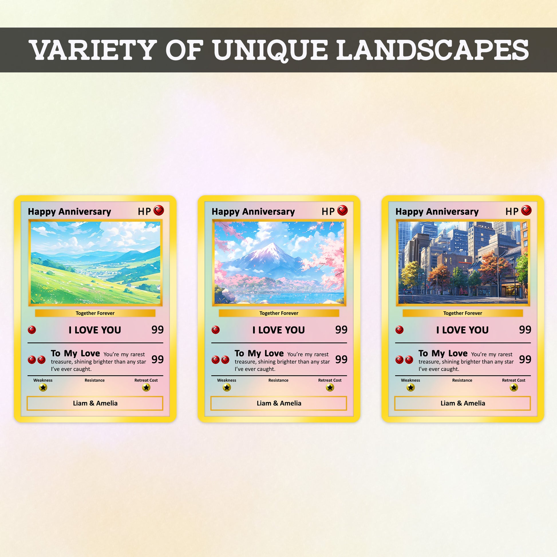 Happy Anniversary Card, Custom Pokémon Cards with Anime Picture, Personalized Poke Cards Animated Style Gifts for Him and Her - CPC-61