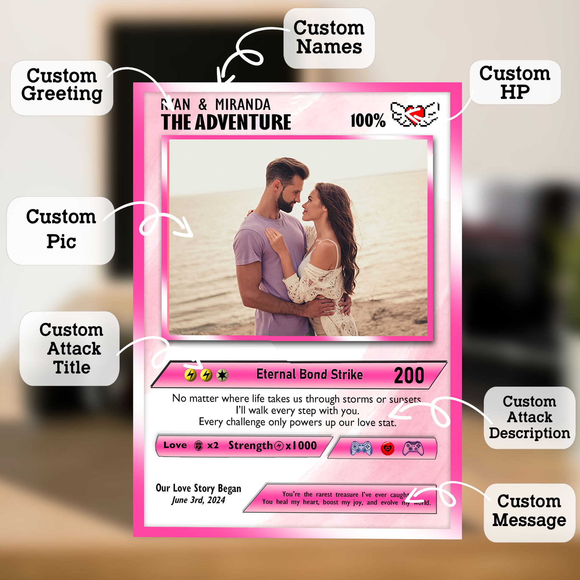 Happy Valentines Card, Custom Pokémon Cards with Anime Picture, Personalized Poke Cards Animated Style Gifts for Him and Her - CPC-72