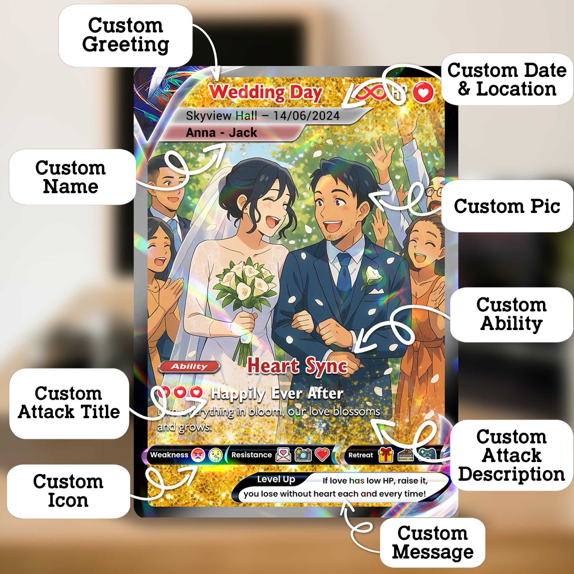 Personalized Pokémon Card with Wedding Day & Location, Anime Style Custom Pokémon Cards - CPC-05